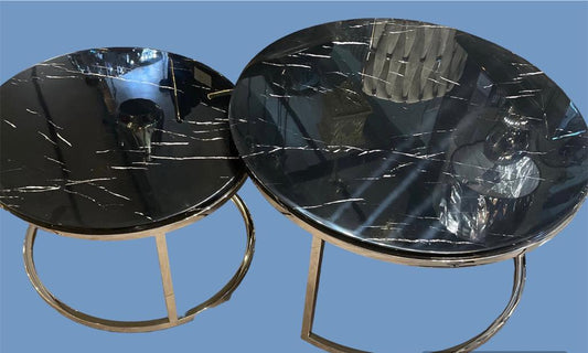 2-Delige Ronde Marmeren Salontafel (zwart/goud)Ø80/60cm