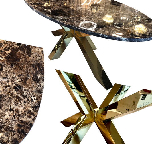 Bruin marmeren salontafel 2-delig/inschuifbaar goud vierkant