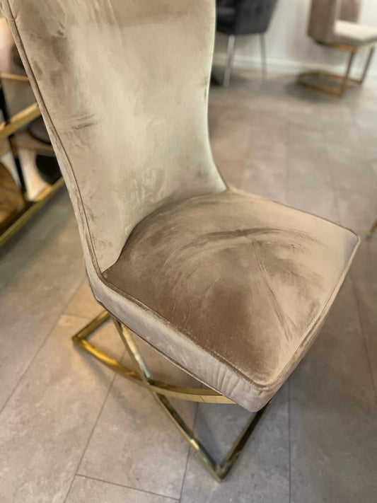 AanbiedingEetkamerstoel Taupe/goud gestoffeerd