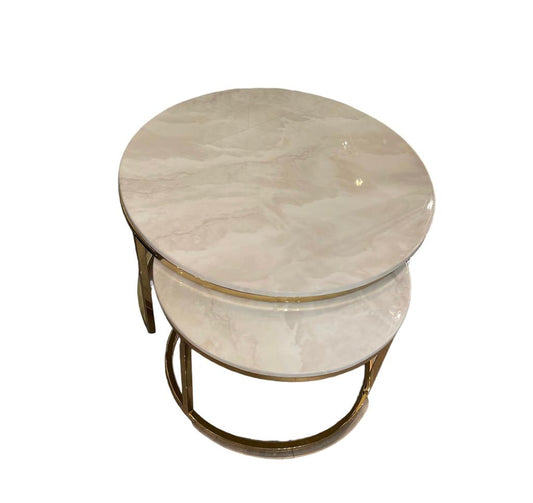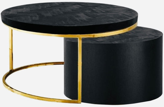 Salontafel 2-delig bruin marmer goud rond