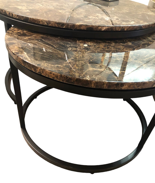 Salontafel 2-delig bruin marmer zilver rond