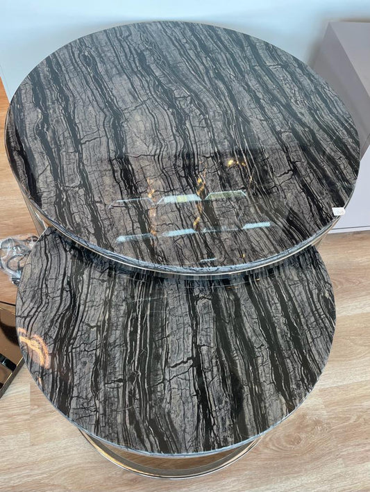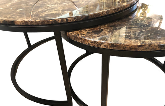 Salontafel 2-delig bruin marmer Ø80/60cm