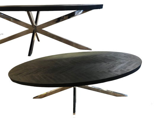 2-Delige Ronde Marmeren Salontafel (zwart/zilver)Ø80/60cm