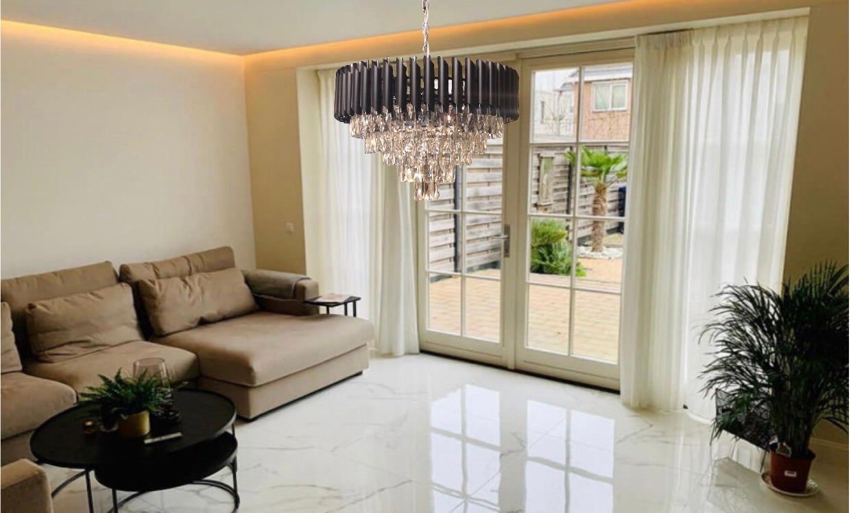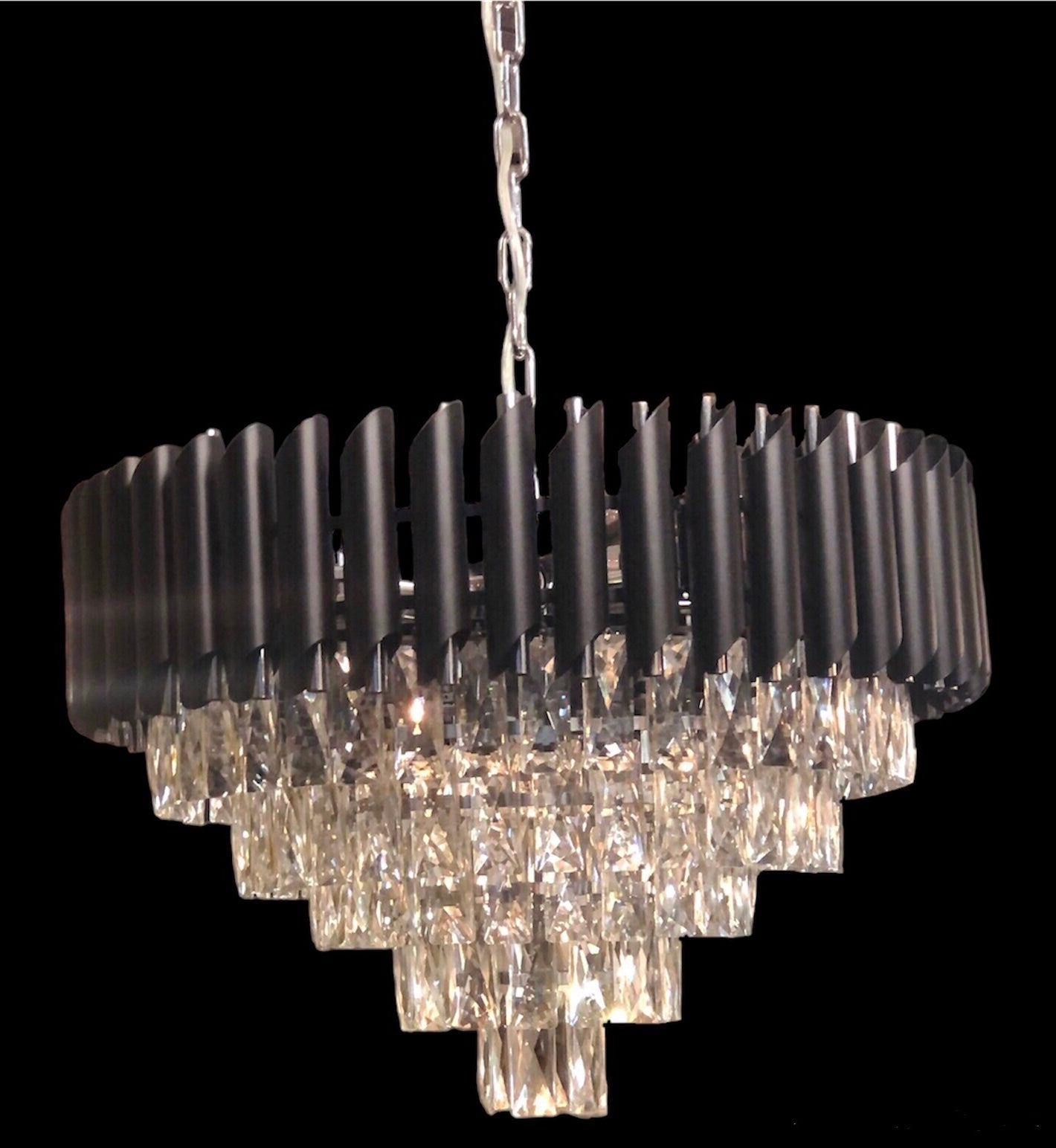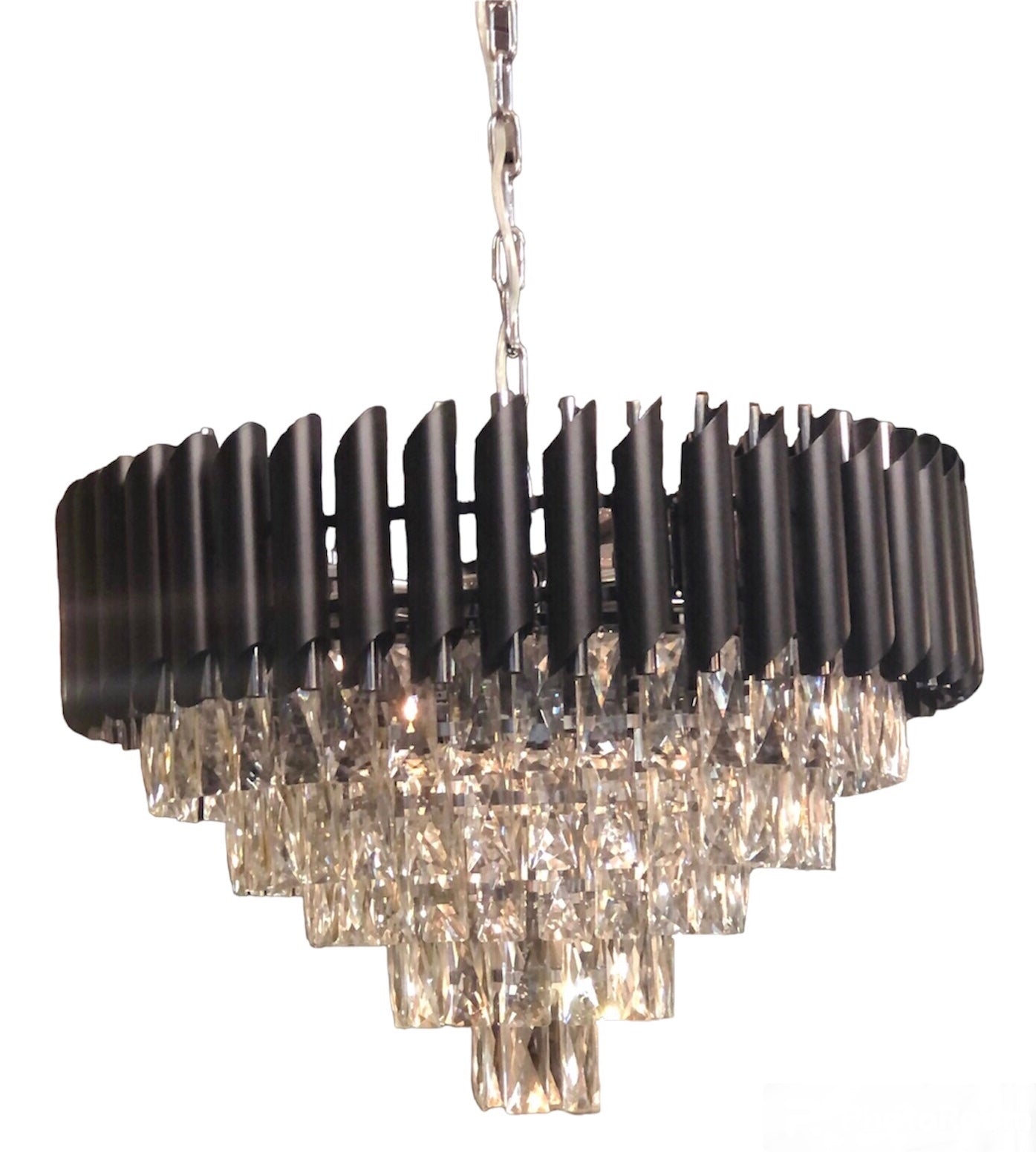 Heldere kristallen afgewerkt met moderne zwarte metaal