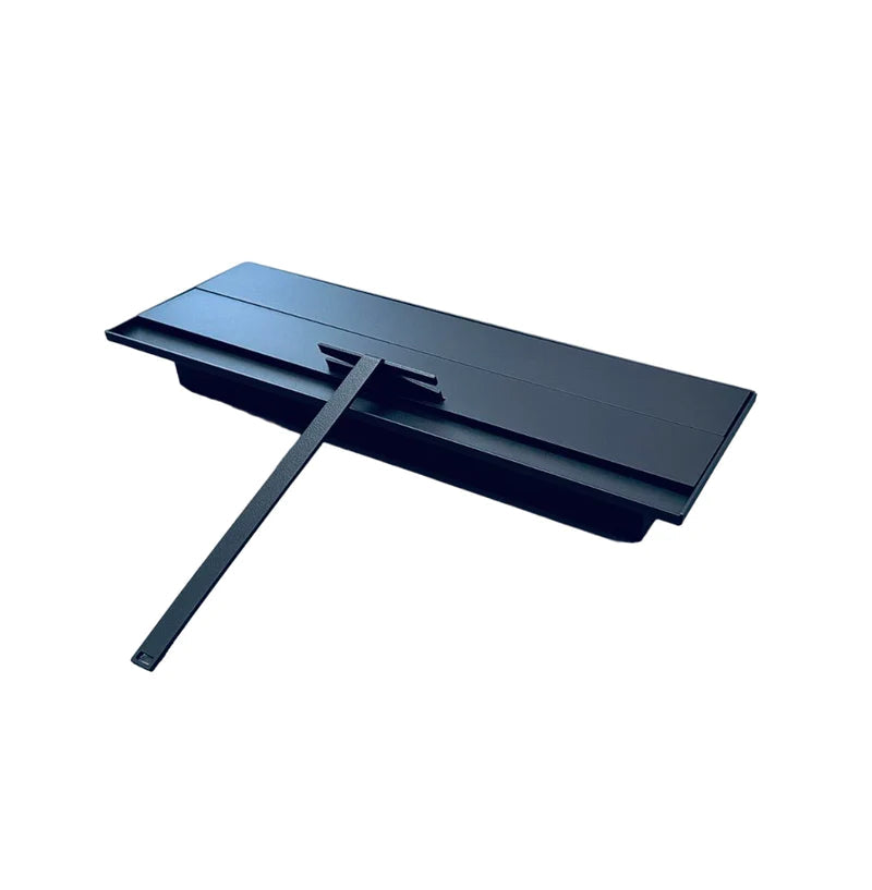 Branderdeksel: dikte en materiaal 6 mm, staal gepoedercoat met zwarte hittebestendige lak.