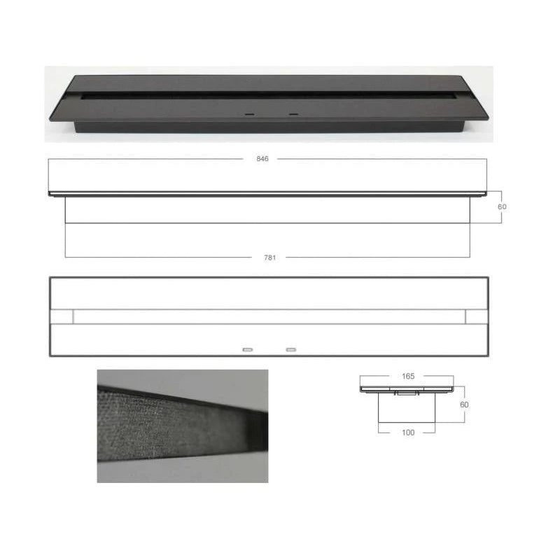 Nominale afmetingen: (B x D x H) 846 x 165 x 60 mm