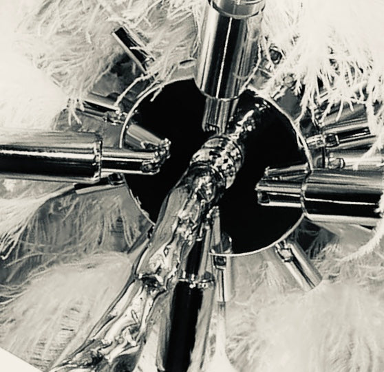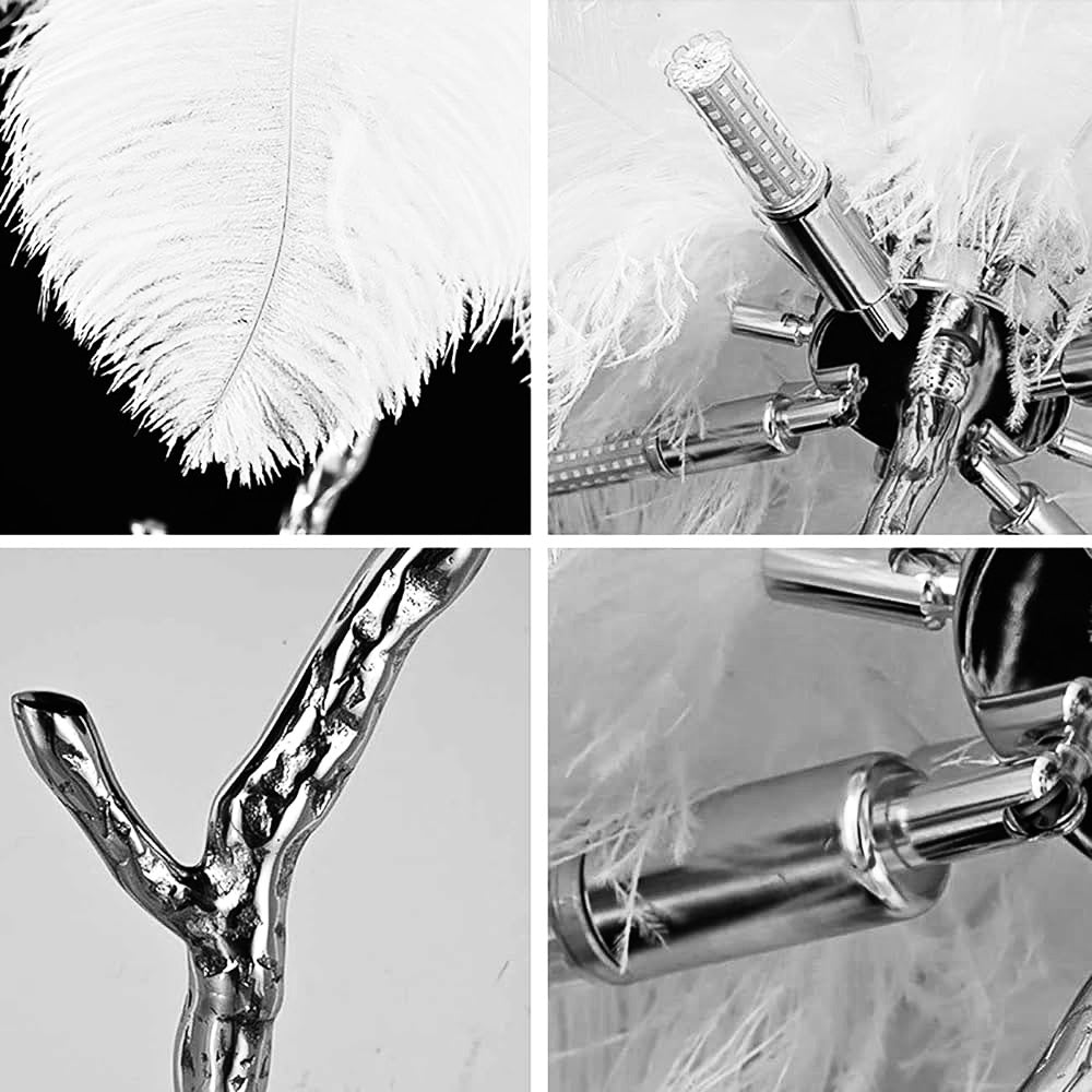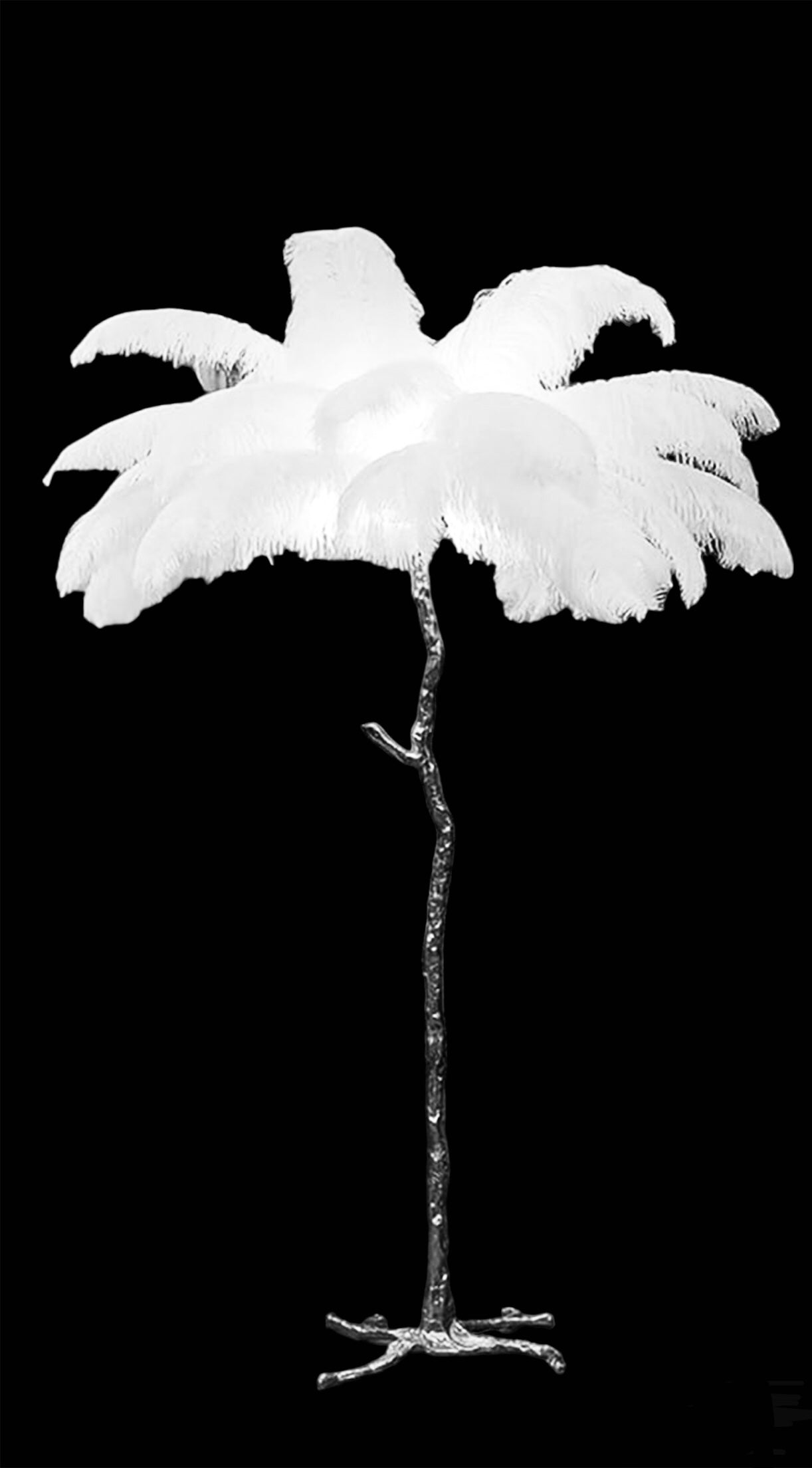 Vloerlamp kokospalm met struisvogelveren in het wit/zilver.