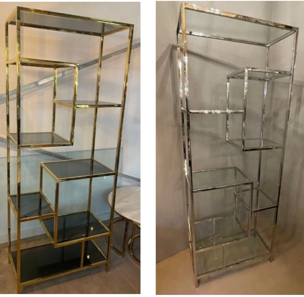 Goudkleurig wandkast met donkere smok glazen