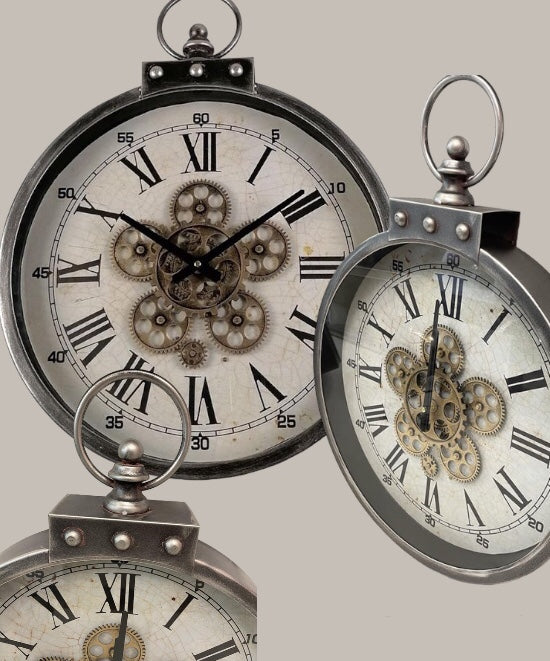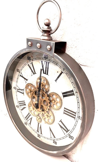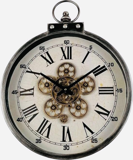 Wandklok met draaiende tandwielen